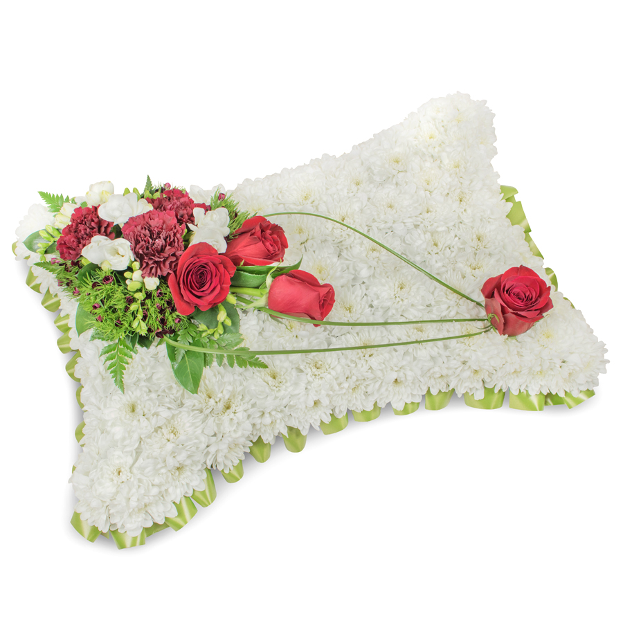 Convey your deepest sympathies with our Luxurious Sympathy Arrangement, featuring an exquisite selection of white chrysanthemums, vivid red roses, graceful white freesias, and dark red carnations. Each bloom is hand-selected to ensure the highest quality and freshness.